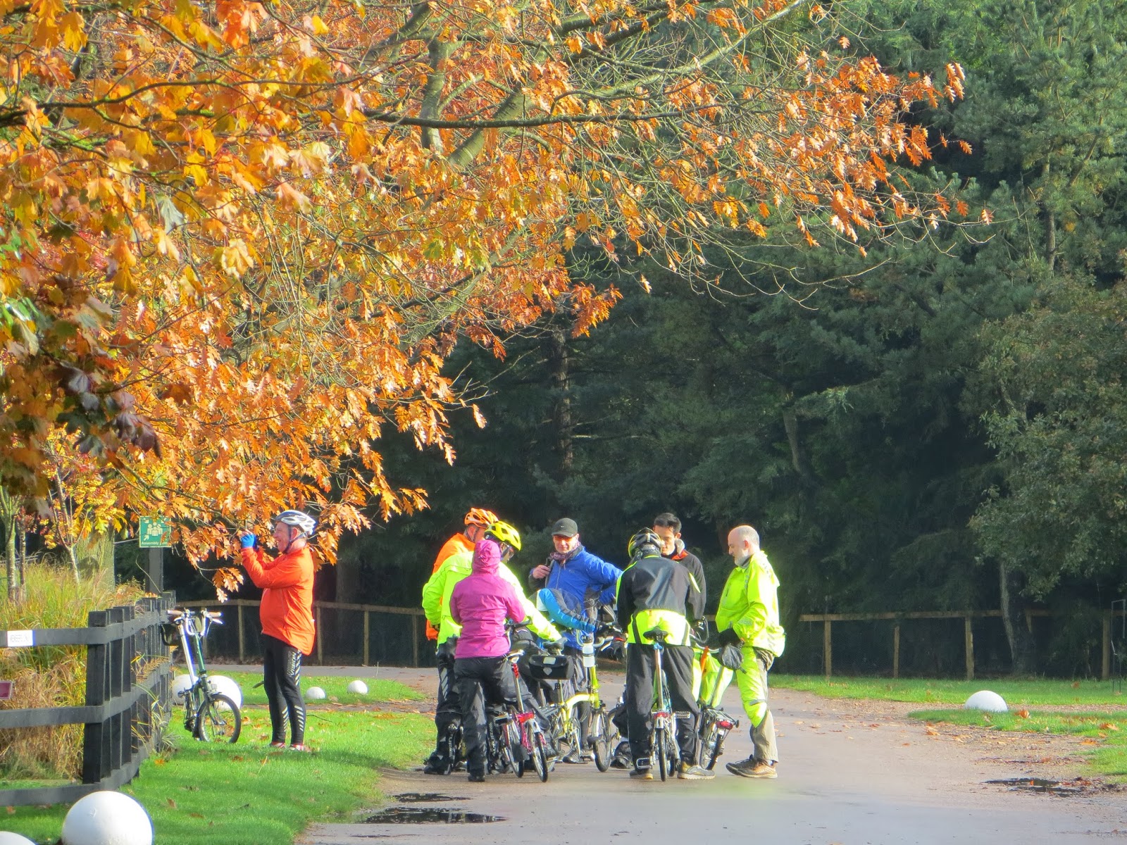 I didn't dare stay inside for too long as I thought if I was too snug in the warm I would stay there for the afternoon. A few of us stayed outside surrounded by Brommies - what's not to like?! With lunch over we were off! Out into a bit of drizzle, I put my sopping Gore gloves on at the recommendation of a fellow rider who suggested if I wiggled my fingers the gloves would warm up and dry up. Whoop! Whoop! They did!